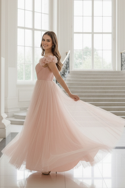 Окунитесь в атмосферу сказки с этим невероятно нежным и воздушным платьем. Созданное для самых особенных моментов, оно сочетает в себе классическую элегантность и современные романтические тенденции.