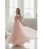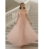Платье деликатно очерчивает фигуру, создавая утонченный силуэт с нотками кокетства и нежности. Многослойная юбка струится от подчеркнутой линии талии, создавая летящий эффект при каждом шаге. Длина платья придает образу торжественность и величие. Нежный персиково-розовый цвет освежает и подчеркивает вашу женственность.