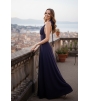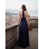 Изящное вечернее платье темно-синего цвета с открытой спиной