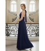 Изысканное вечернее платье, создающее утонченный и элегантный силуэт. Модель выполнена из легкой, струящейся ткани глубокого темно-синего цвета, которая красиво драпируется и мягко подчеркивает движения.