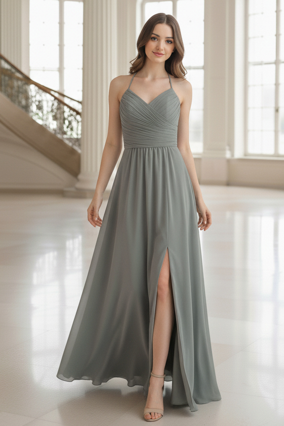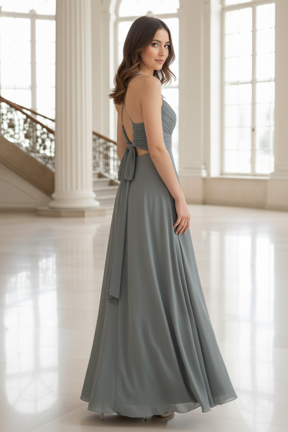 Благородный оттенок делает это платье прекрасным выбором для различных торжественных мероприятий, от свадьбы в качестве наряда подружки невесты до выпускного вечера.