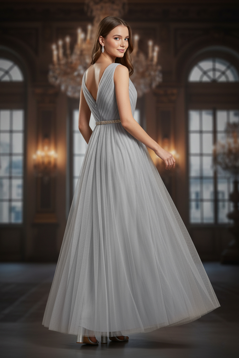 Вечернее платье с V-образным вырезом спереди и сзади